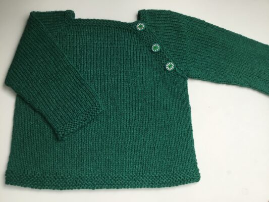 Jeg har netop strikket en lysegrøn “Forårsluner” – en god og sikker barselsgave