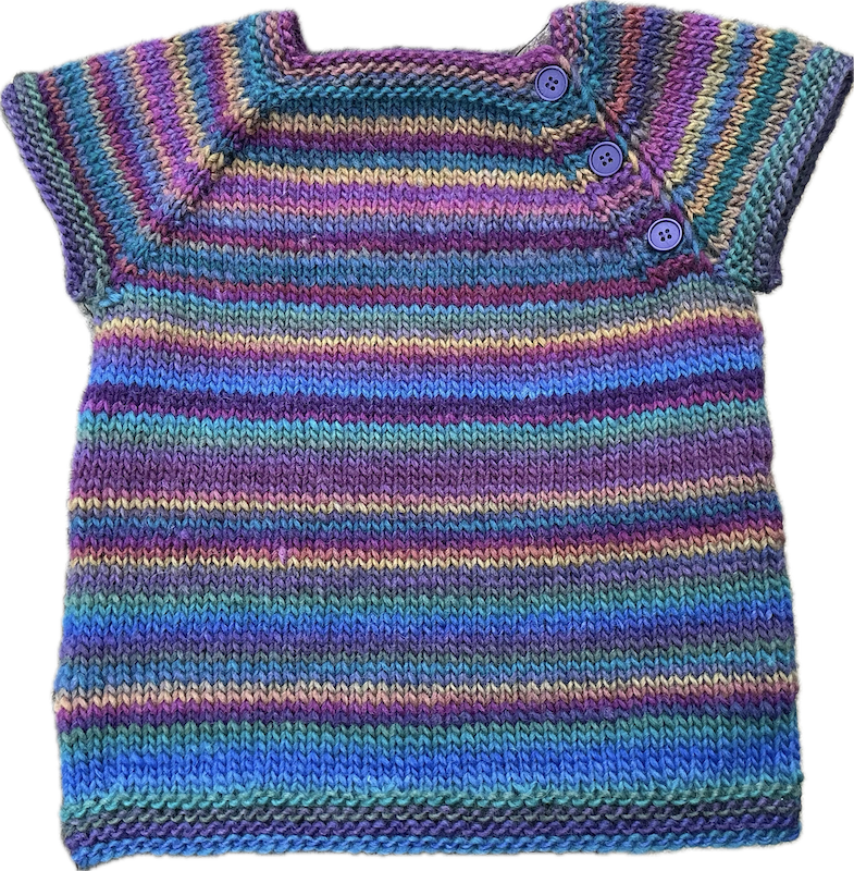 Størrelse: ca. 12 mdr – ca. 6/8 år. Gå ud fra brystvidde. Den færdige overvidde fra ca. 52 – 70 cm.